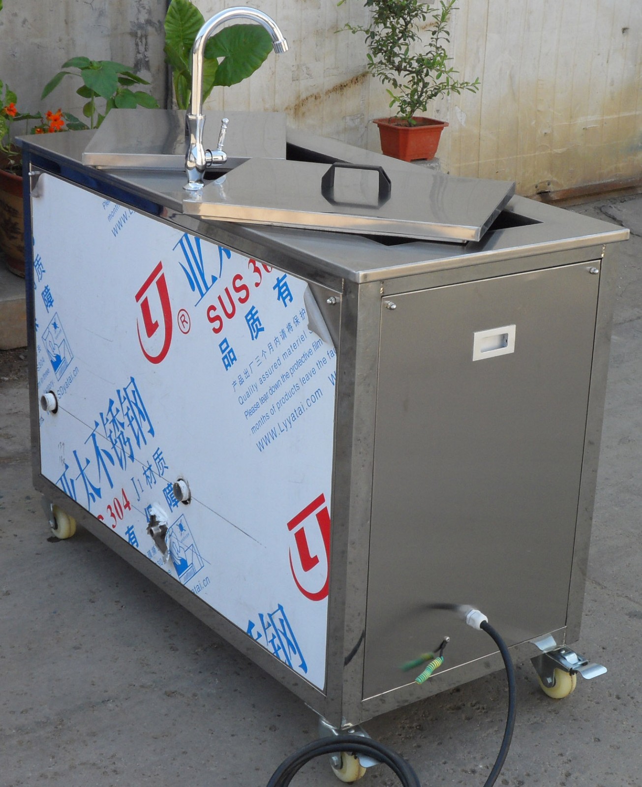 本機主要由超聲波發生器、換能器、雙清洗槽、進水龍頭、排污閥等組成。